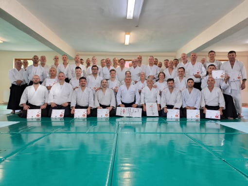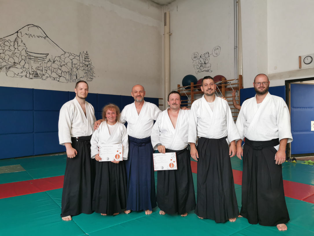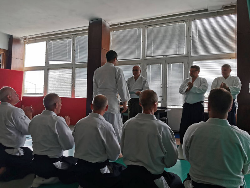 A hétvégi kurzus során ünnepélyes keretek között adtuk át azokat az dan diplomákat, amelyek immár elsők abban a sorban, amelyek a HBSE mint Aikikai tag adhatott ki technikai vezetőnk neve alatt.